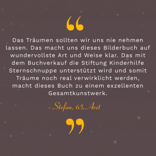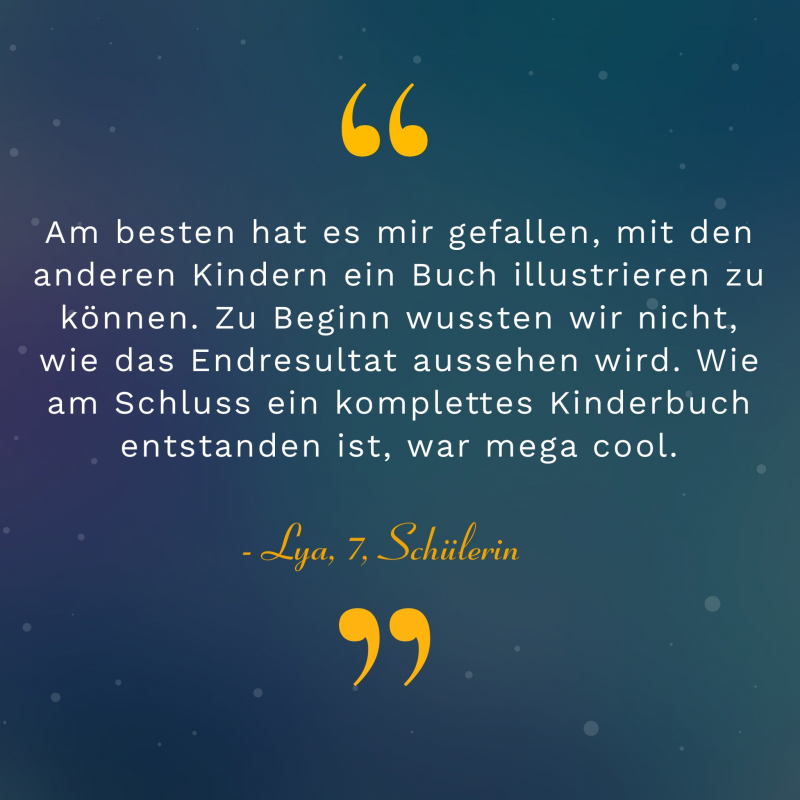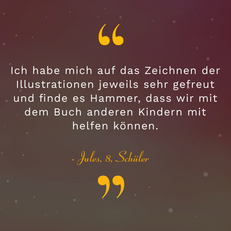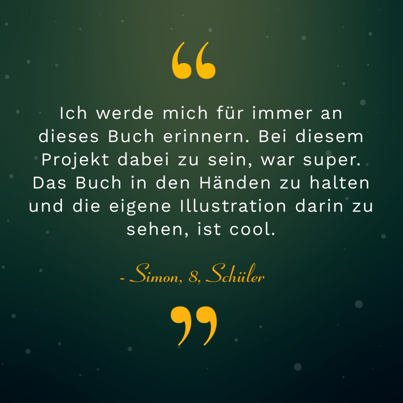 «Ich gratuliere der Klasse 1./2. b, aus Wabern bei Bern, zu ihrem grossartigen Kinderbuch-Erfolg! In Mitten der Pandemie habt ihr, trotz vielen Einschränkungen und Verboten, ein wunderschönes Buch zugunsten von Kindern mit einer Krankheit oder Behinderung auf den Markt gebracht. Damit zeigt ihr, Gutes tun, kann man immer. Auch Klassenprojekte sind möglich, wenn auch anders und ungewohnt. Ihr habt den Kopf nicht einfach in den Sand gesteckt, sondern seid mit viel Kreativität, Innovation und Fleiss neue Wege gegangen und habt mustergültig ein beeindruckendes Kunstwerk erschaffen, mit dem ihr viel Freude und Inspiration verbreitet.»